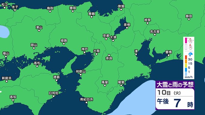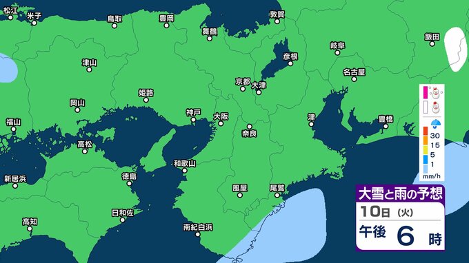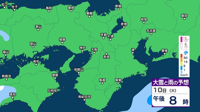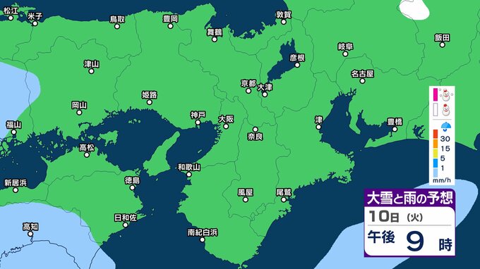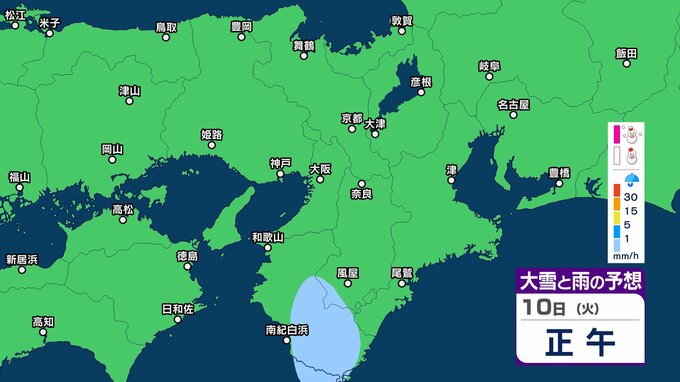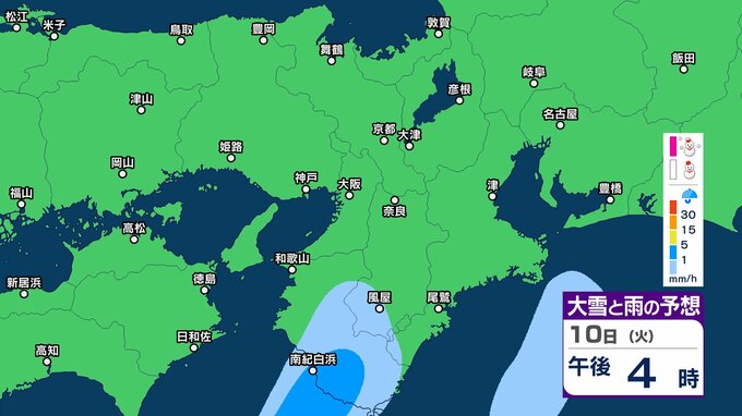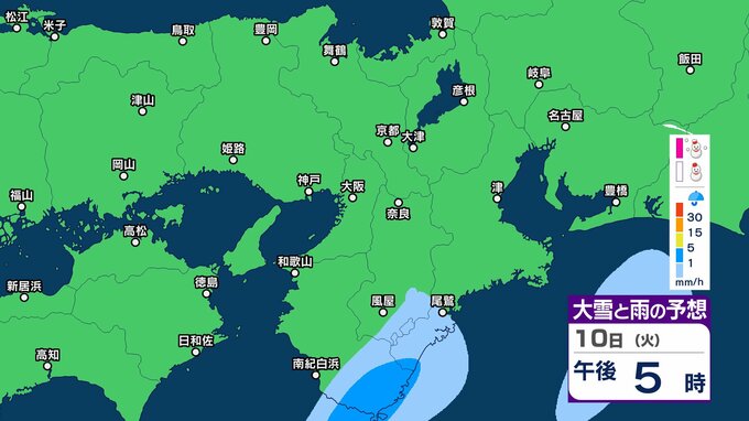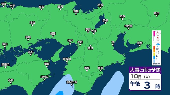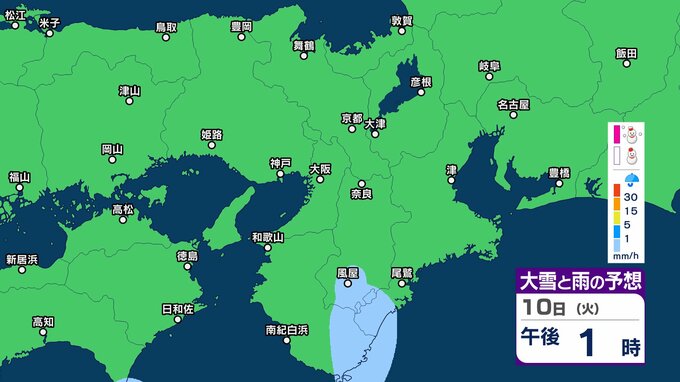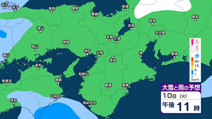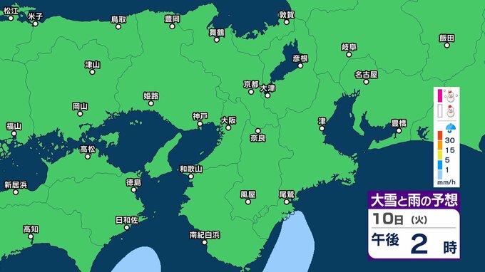 【関西の雪雨 どうなる?】大阪・京都・神戸・奈良・和歌山 9日(月)~12日(木)1時間ごとの雪雨シミュレーション&16日間天気予報 祝日の11日(水)は広範囲でまとまった雨か【気象庁 9日現在】 RSK山陽放送 2026年2月9日(月) 12:27 国内 10日(火)午後 11日(水・祝)の天気は?9日~12日まで近畿地方の雪雨シミレーション 11日(水・祝)の天気は?9日~12日まで近畿地方の雪雨シミレーション