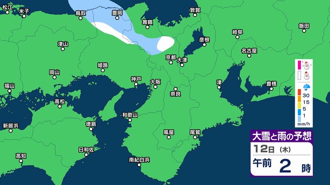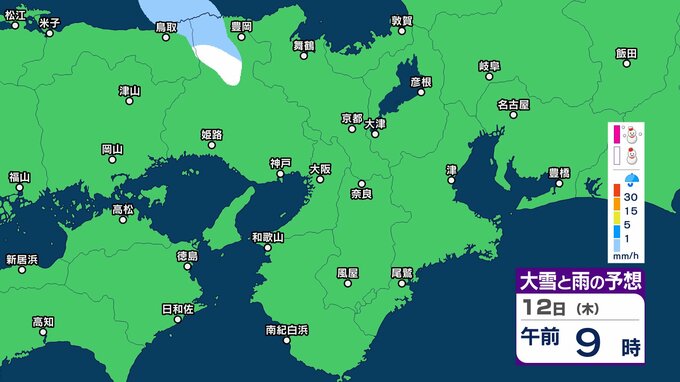 【関西の雪雨 どうなる?】大阪・京都・神戸・奈良・和歌山 9日(月)~12日(木)1時間ごとの雪雨シミュレーション&16日間天気予報 祝日の11日(水)は広範囲でまとまった雨か【気象庁 9日現在】 RSK山陽放送 2026年2月9日(月) 12:27 国内 12日(木) 11日(水・祝)の天気は?9日~12日まで近畿地方の雪雨シミレーション 11日(水・祝)の天気は?9日~12日まで近畿地方の雪雨シミレーション