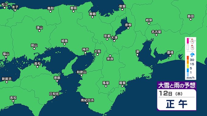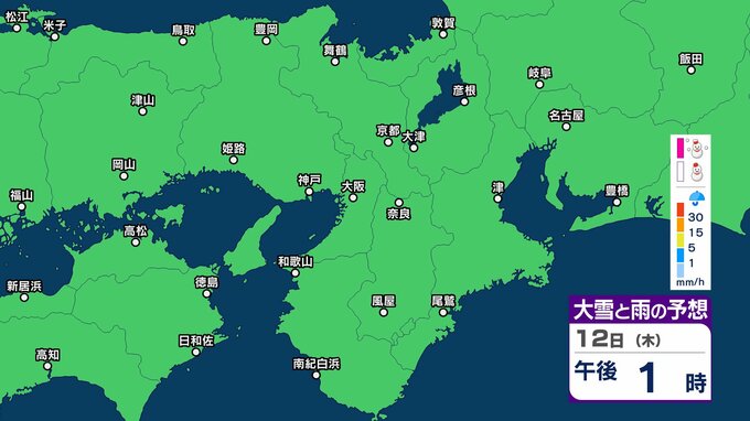 【関西の雪雨 どうなる?】大阪・京都・神戸・奈良・和歌山 9日(月)~12日(木)1時間ごとの雪雨シミュレーション&16日間天気予報 祝日の11日(水)は広範囲でまとまった雨か【気象庁 9日現在】 RSK山陽放送 2026年2月9日(月) 12:27 国内 12日(木)午後 11日(水・祝)の天気は?9日~12日まで近畿地方の雪雨シミレーション