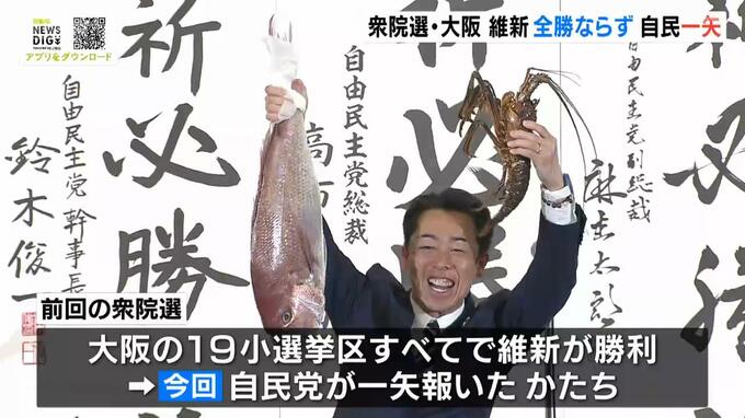 8日投開票が行われた衆議院選挙では、日本維新の会は大阪に19ある小選挙区の全勝を逃し、自民党が1議席を獲得しました。 大阪19区で2位と約700票の差で当選を果たした自民の谷川とむさん(49)。自民…