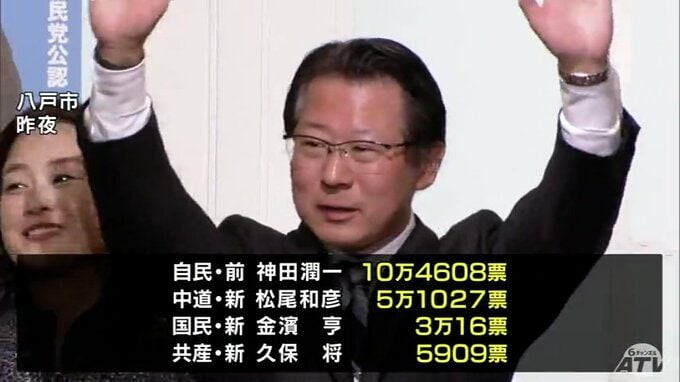 青森2区は自民党の前職・神田潤一氏が10万4000票あまりを獲得して4人の争いとなった選挙戦を制し、3期目の当選を果たしました。