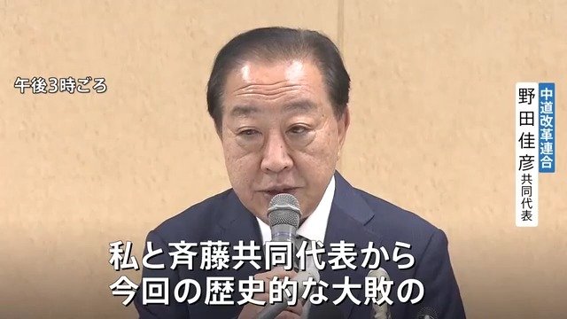 中道・野田共同代表と斉藤共同代表が辞意を表明