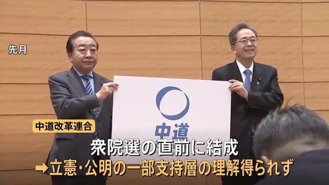 中道は、衆院選の直前に結成されたため、立憲民主党や公明党の一部の支持層の理解を得られず、これまで党の要職を務めてきた人や、将来が期待されていた中堅・若手が軒並み落選しました。