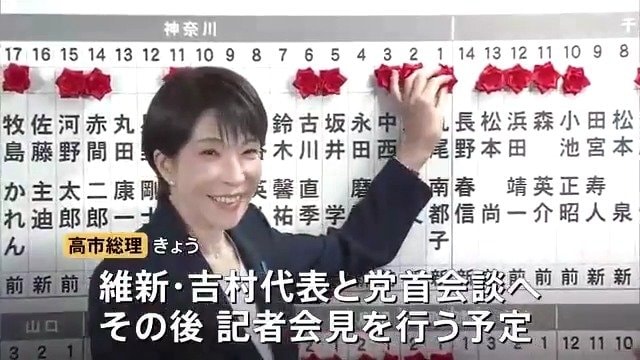 一方、大勝した自民党の高市総理はこの後、日本維新の会の吉村代表との党首会談に臨みます。その後、高市総理は記者会見を行う予定で、自民党単独で衆議院の3分の2の議席を得たことを追い風に、新年度予算案の早期成立を目指す構えです。