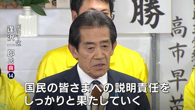 岡山1区では、自民党の逢沢一郎さんが中道改革連合の原田謙介さんらに大勝し14回目の当選です。