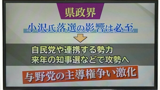 野党が強い県政界、その地盤を支えていた重鎮・小沢さんの落選の影響は必至です。