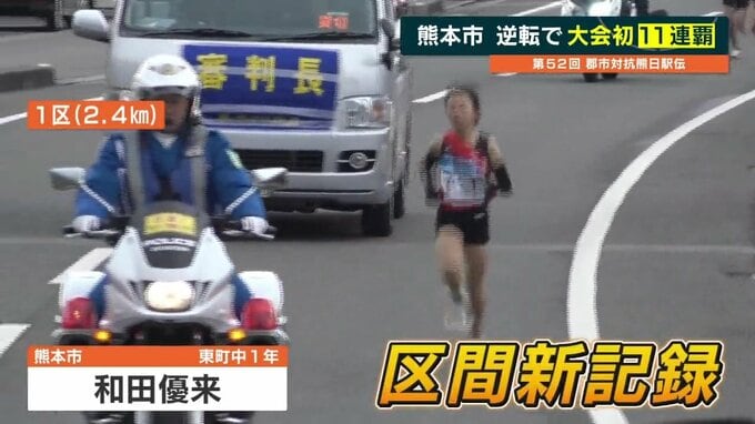 熊本市は1区の和田優来が区間新記録の走りで絶好のスタートを切ります。