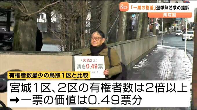 このうち仙台高等裁判所では、原告の代理人を務める弁護士が秋田を除いた東北5県の選挙の無効を求めて提訴しました。訴状などによりますと、今回の衆院選では2025年9月1日現在で有権者数が最も少ない鳥取1区と比較すると、有権者数が2倍以上の宮城1区と2区は一票の価値が約0.49票分しかないと訴えています。
