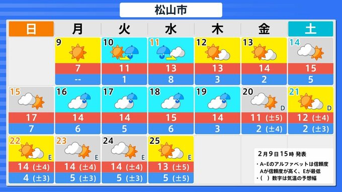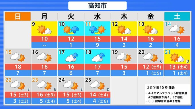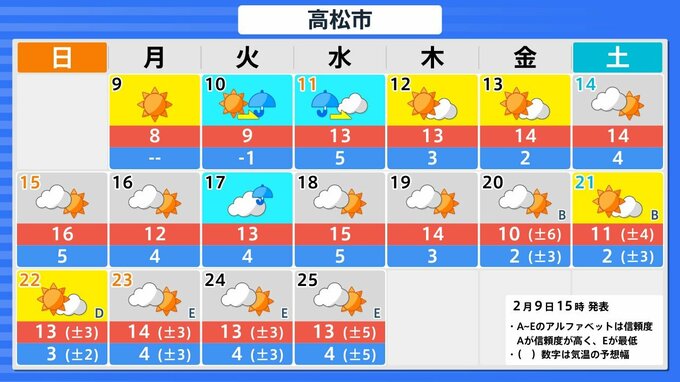 【四国地方 雪雨の予想】香川・愛媛・高知・徳島 2月9日(月)~12日(木)1時間ごとの雪雨シミュレーション「11日(水・祝)は広範囲で雨の予報 恵みの雨となるか?」【気象庁 9日午後6時更新】 RSK山陽放送 2026年2月9日(月) 18:00 国内 香川・愛媛・高知・徳島の16日間天気予報 ▶9日(月)~12日(木)中国・四国地方の雪雨シミュレーション画像