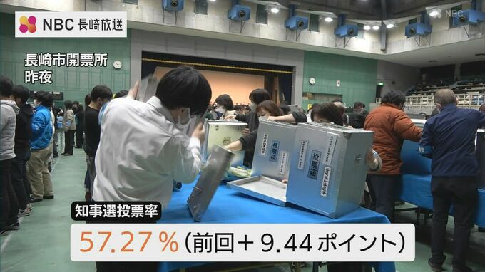 今回の知事選の投票率は57.27%で、前回と比べ9.44ポイント高くなりました。