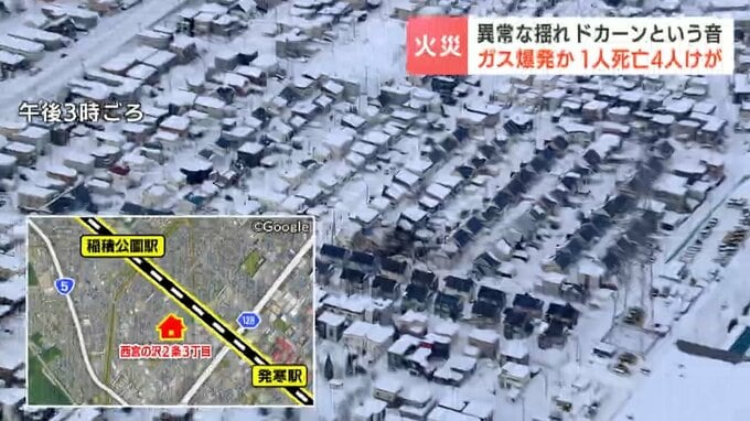 9日未明、札幌市手稲区の住宅で爆発を伴う火事があり、1人が死亡、4人がけがをしました。