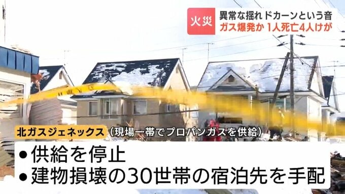 また、現場の一帯でプロパンガスを供給する北ガスジェネックスは供給を停止し、建物が損壊した30世帯について、9日の分の宿泊先を手配しました。