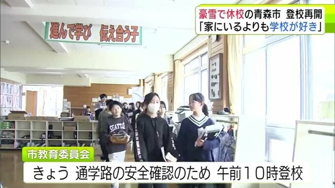 青森市教育委員会によりますと、9日は通学路の安全確認のため、午前10時の登校となっていましたが、10日以降については教職員が施設及び通学路の状況を確認し、見守り指導の上、通常登校とするということです。