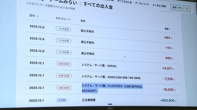 デジタル技術を駆使した行政・政治改革を掲げ、政治資金を“見える化”で政党のお金の流れを公開している『チームみらい』。