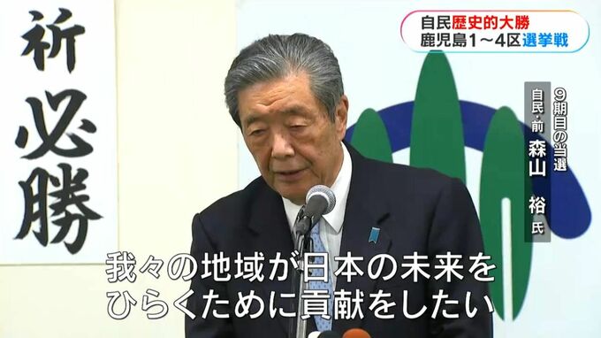 4人が立候補した鹿児島4区は、自民党前職の森山裕さんが9期目の当選です。
