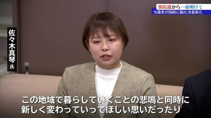 初めての国政選挙挑戦で比例復活による当選を果たした国民民主党の佐々木真琴氏は、9日、選挙公示の4日前に出馬表明を行ったのと同じ岩手県庁で取材に応じました。