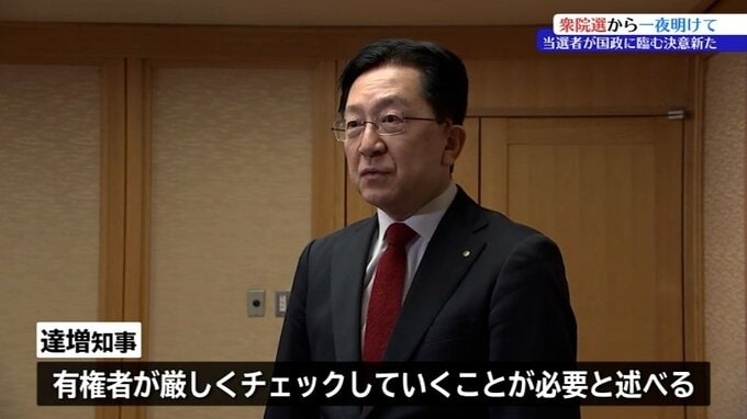 また達増知事は、一つの政党が単独で3分の2を超える議席を獲得した状況に、有権者が厳しくチェックしていくことが必要だと述べました。