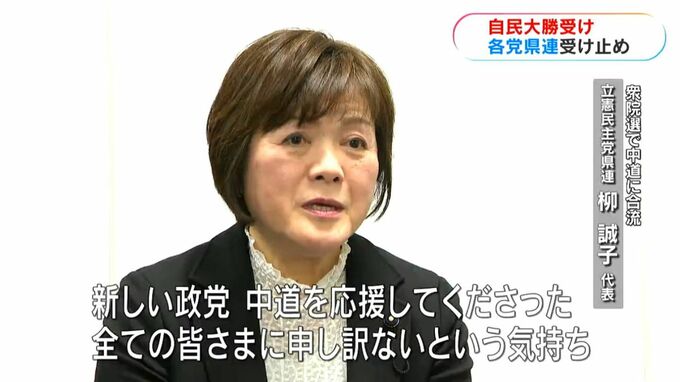 「新しい政党、中道を応援してくださった全ての皆さまに本当に申し訳ないという気持ちでいっぱい。(立憲と公明が)なぜ一緒になったのかという声や、そんなことをしたら立憲の支持者が離れていくのではという厳しい声もいただいた。それがこういう結果になってしまった。生まれたばかりの政党なので、ここはしっかり育て支える取り組みが必要だと思っている。公明・立憲が今後についてもこれから話し合いをしながら進めていくことになる」