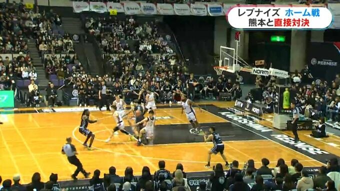 りそなグループ西地区3位の鹿児島レブナイズ。プレーオフ進出圏内3位の座をかけて、ホームで4位熊本と直接対決に臨みました。3位レブナイズと、4位熊本との直接対決。7日の第1戦。遠藤が前半から魅せます。内から…