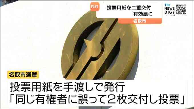 この投票所では用紙を交付機ではなく手渡しで発行していて、名取市選挙管理委員会は「同じ有権者に誤って2枚交付し、そのまま投票された」と判断しました。
