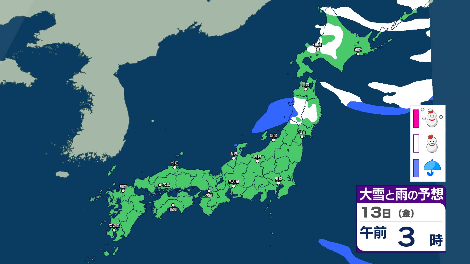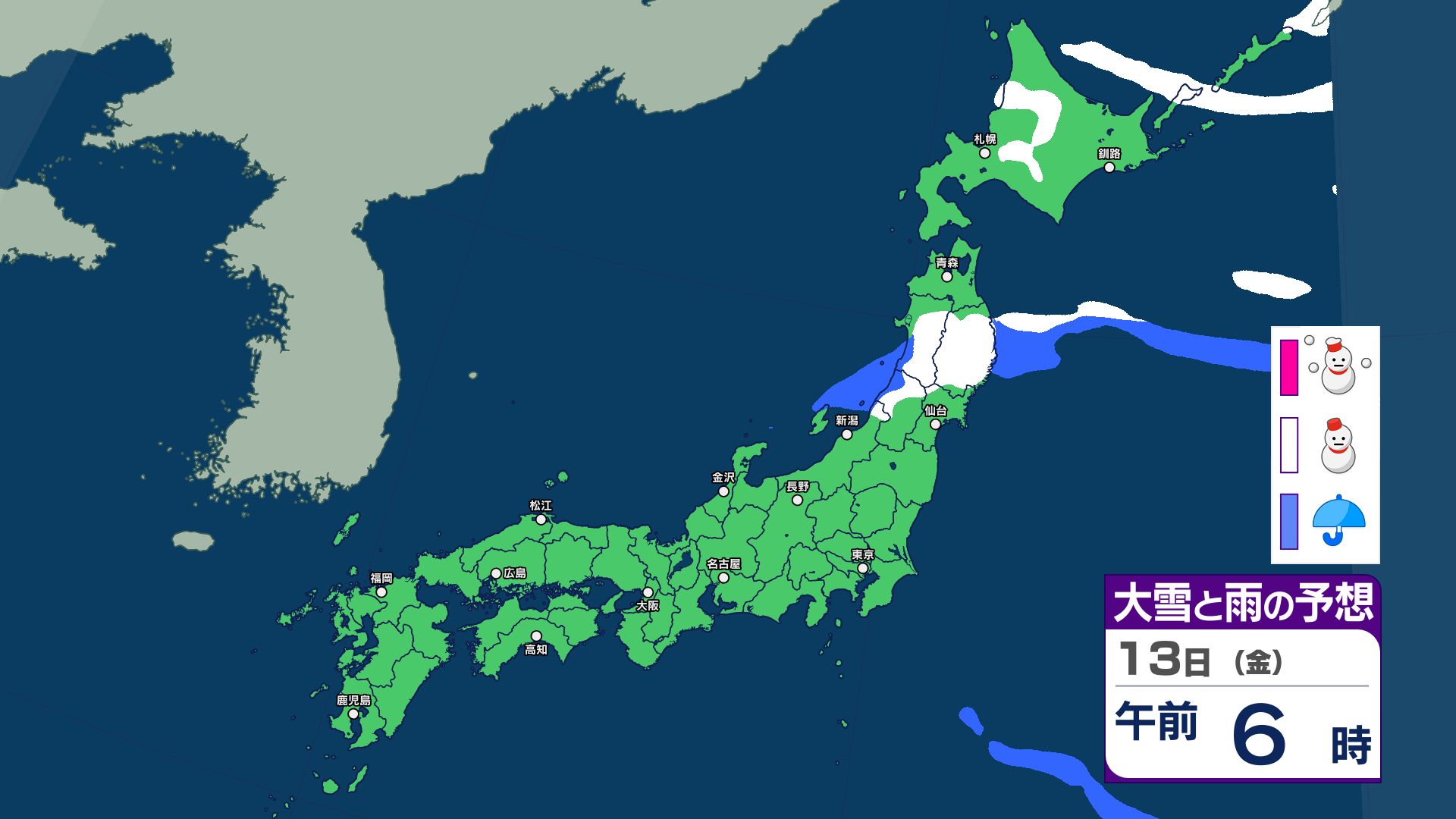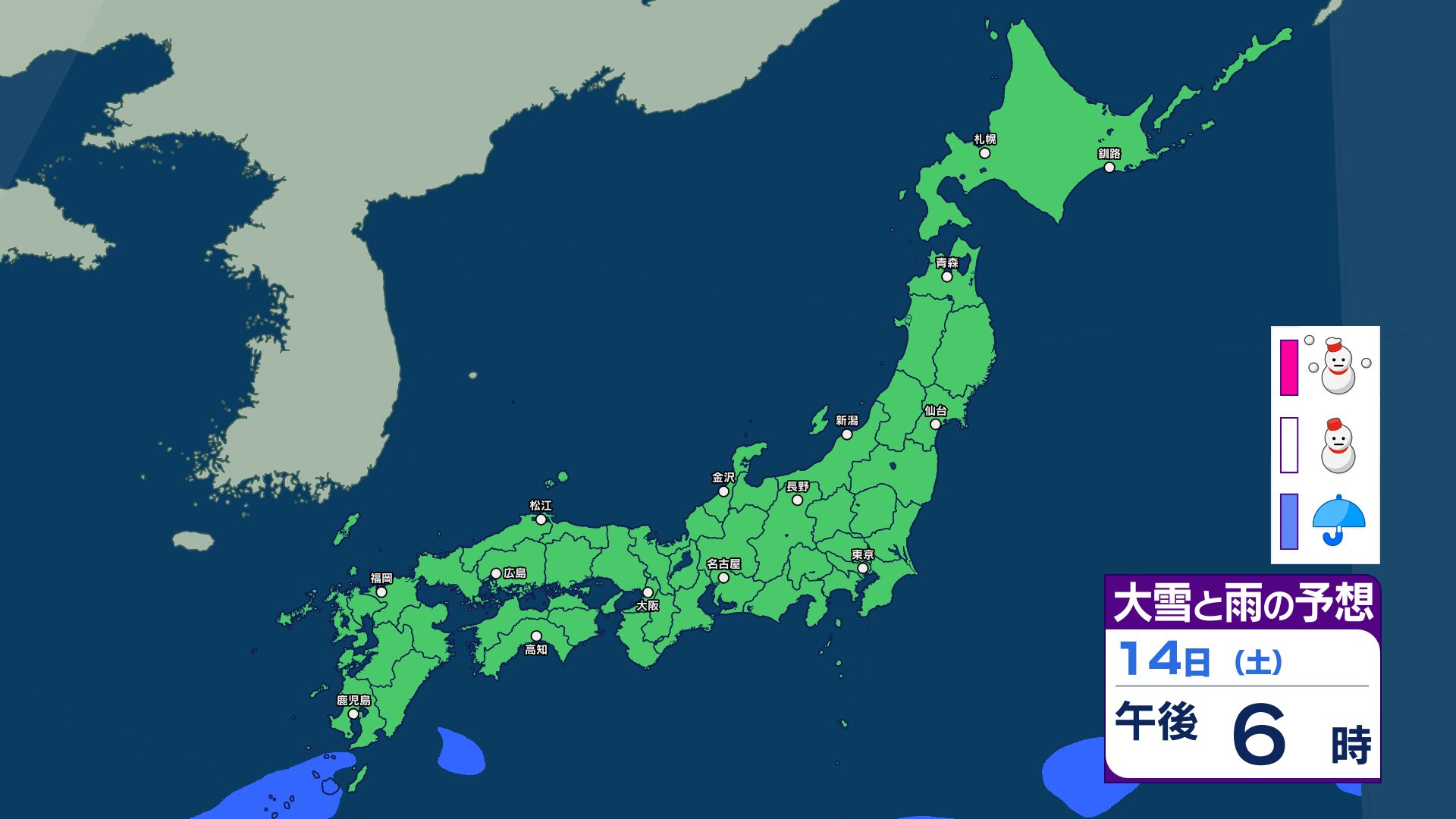【雪と雨のシミュレーション】祝日の11日は広範囲で大雨…南岸低気圧の接近などで湿った雪も 北海道・東北・関東甲信・北陸・東海・近畿・中国・四国・九州【主要地点の16日間予報掲載】 信越放送 2026年2月9日(月) 19:19 国内