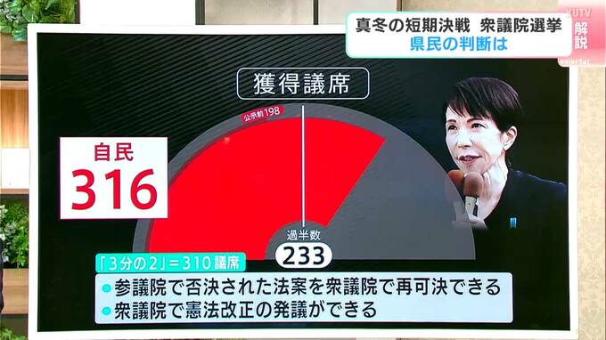 衆議院で自民党の議席が「単独」で「3分の2」を超えるのは戦後初めてで、まさに“歴史的圧勝”となりました。この結果について県内各政党の受け止めです。
