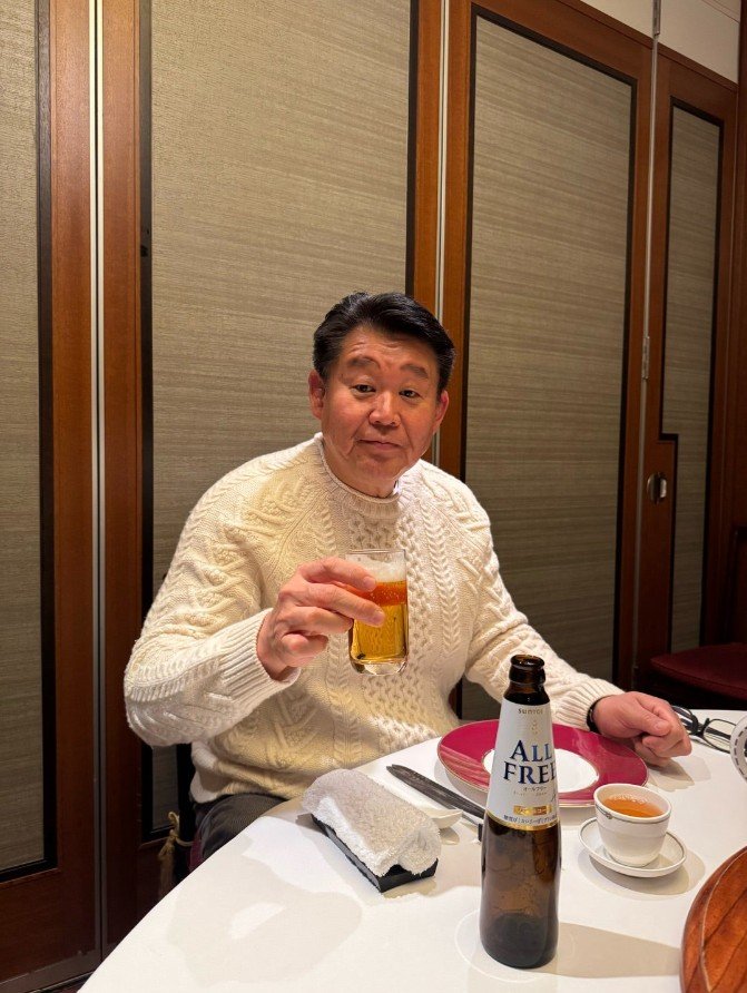 さらに同日の夕食には、名店「中国飯店」を訪れたことを報告。「高速道路が凍っていたら妻だと帰りの運転が難しいかもしれないので、代わって運転できるようにノンアルコールビール。ついでに休肝日です」と、愛妻への細やかな気遣いを見せました。