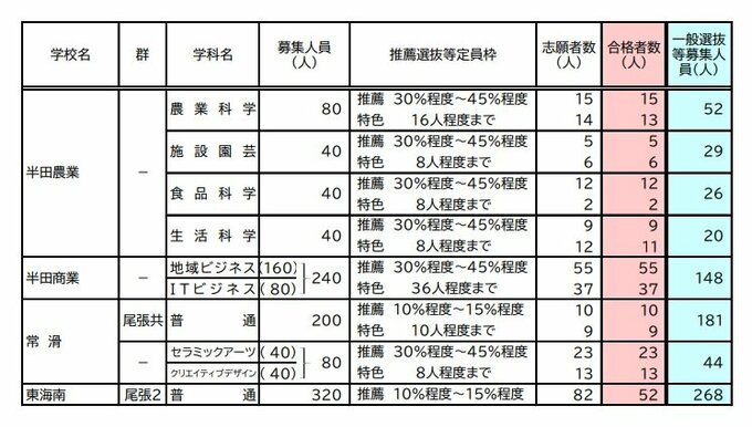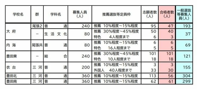 【愛知県公立高校入試 2026】全日制課程 一般選抜等の募集人員 推薦選抜等の合格者数 〈一覧・全校掲載〉