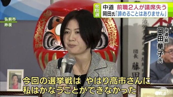 中道・前職の岡田華子氏が真っ先に口にしたのは、当選した相手候補ではなく高市総理でした。再選はかないませんでしたが、初当選から1年4か月、国政の課題を感じて新党にいち早く参加を表明して変革を訴えてきた思いは消えません。