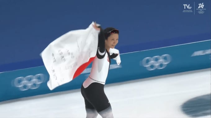 レース後半、高木選手は、オランダのレールダム選手を追う展開となります。