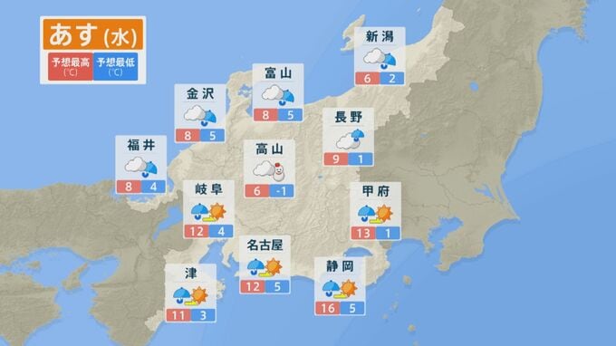 東海・北陸でも、11日は雨の降るところが多いでしょう。太平洋側では昼過ぎ以降は晴れ間が出そうです。