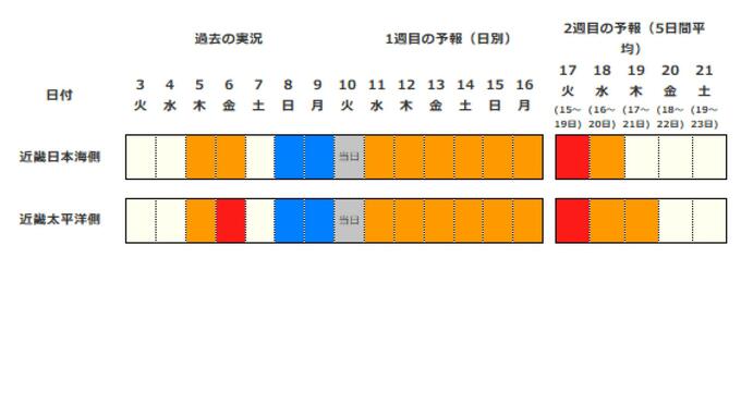【早期天候情報】全国でこの時期としては‟10年に1度‟級の高温予想 2月15日(日)頃から 平年から「+3℃前後」の暖かさへ 長崎放送 2026年2月10日(火) 10:31 国内 【近畿地方】15日頃から「かなりの高温」 ◆【画像を見る】各地の気温予報 ◆この記事を初めから読む 時期: 2月15日(日)頃から 基準: 5日間平均気温が平年より+2.7℃ 以上高い 農作物の管理に加えて、積雪の多い地域ではなだれに注意してください。