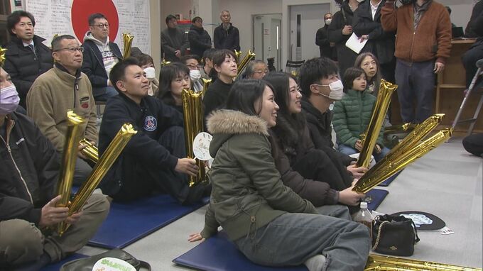 村瀬選手を応援しようと地元・岐阜市では、午前3時ごろから同級生らが集まりました。