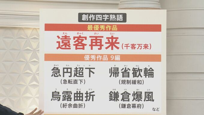 今年の世相を漢字4文字で表現した「創作四字熟語」。元々ある四字熟語の漢字を変えたり、もじってみたりする言葉遊びです。最優秀作品から見ていきます。