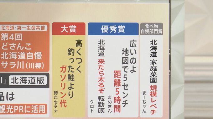 ■北海道川柳の大賞「高くつく 釣った鮭より ガソリン代」