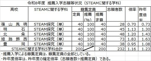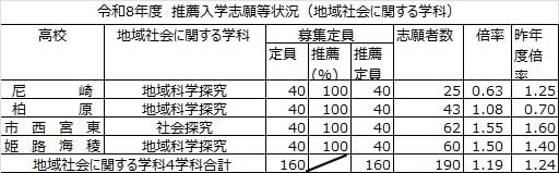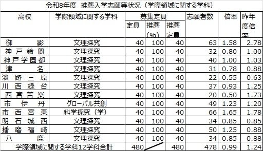 【兵庫県公立高校入試2026】 市西宮(グローバル・サイエンス)2.53倍 神戸(総合理学)2.38倍…兵庫、長田の倍率は?【推薦入学と特色選抜、志願倍率の確定値】 毎日放送 2026年2月10日(火) 18:00 国内 探求学科(文理探求、地域科学探求、STEM探求)などの学科の倍率一覧