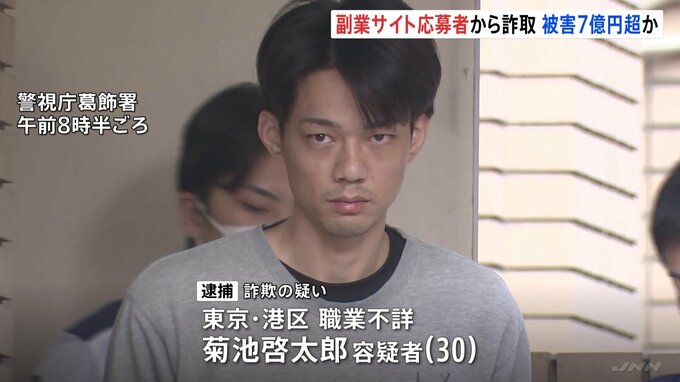 副業サイトに応募した人に「初期費用が必要」などとうそを言い、あわせて7億円以上をだまし取ったとみられるかけ子役のリーダーの男が逮捕されました。詐欺の疑いで逮捕されたのは、菊池啓太郎容疑者(30)で、去…
