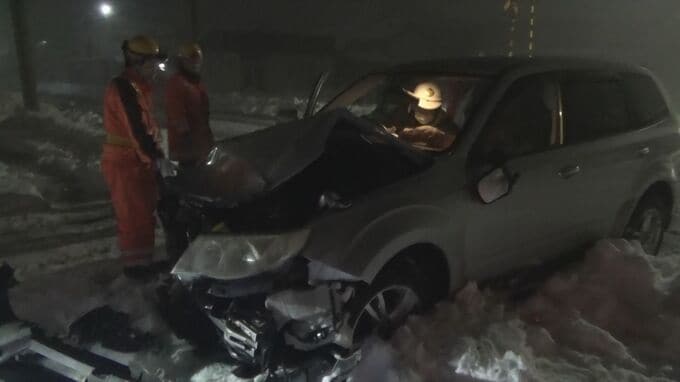 この事故で、乗用車を運転していた80代の男性が首の痛みを訴えるなど、軽いけがをしました。