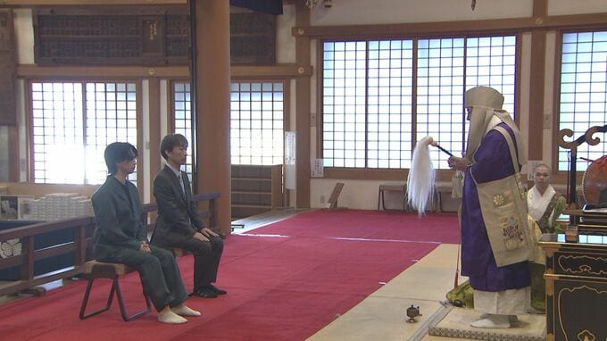 囲み取材前にご祈祷をした岩橋さん。〝お寺でヒット祈願をさせてもらうっていうのは初めての経験でしたので、めちゃくちゃすごくパワーがついたというか。明日がデビュー日なので、それに向けていい雰囲気で迎えられそうかなって思います。〟と話しました。