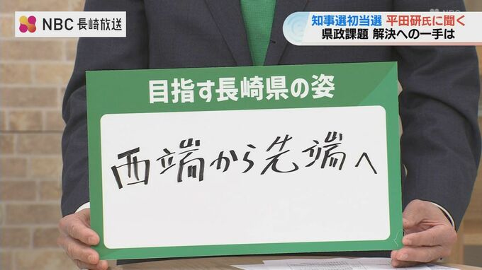 平田氏は目指す長崎県の将来像として「西端から先端へ」という言葉を掲げました。