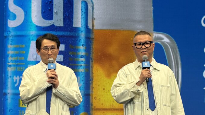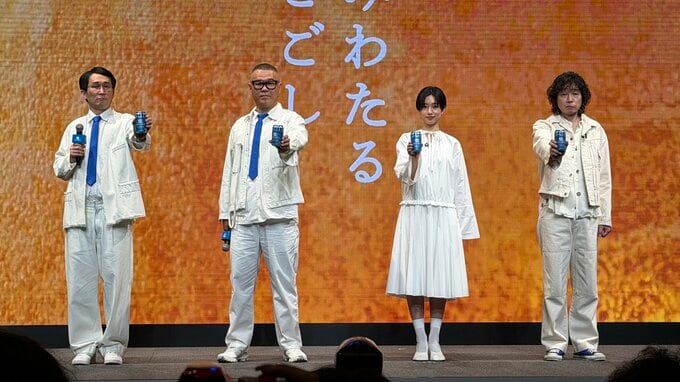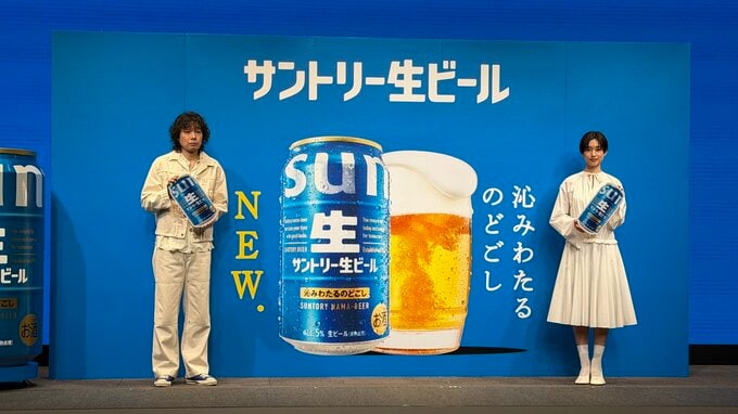 歌手の斉藤和義さん、俳優の河合優実さん、お笑いコンビのシソンヌ(じろうさん・長谷川忍さん)の3組が、「サントリー生ビール」新CM発表会に登壇しました。