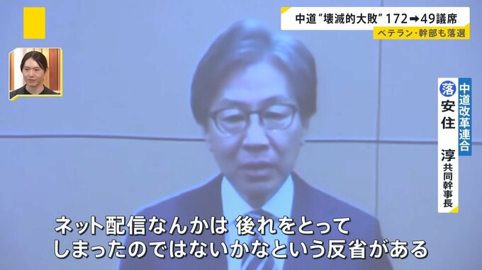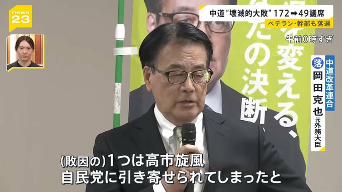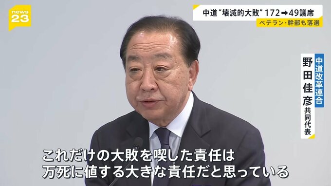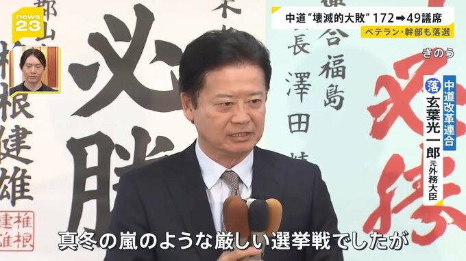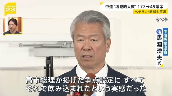 中道“壊滅的大敗 172から49議席へ