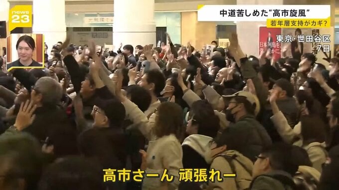 「高市総理の選挙演説が行われています。多くの有権者の皆さんは、鈴なりになってじっくり総理の言葉に耳を傾けています。人が多く詰めかけているので、人が通る隙間もないというような状況です」