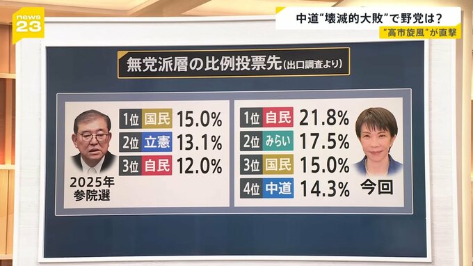 今回は、国民民主党にも負けているということなので、いかに中道が無党派層の支持を得られなかったかということが、選挙結果を象徴していると思います。