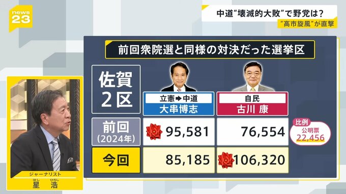 佐賀2区の大串博志さんという立憲を中枢で担ってきた幹部候補の方ですが、2024年の選挙では、自民・古川康さんと戦って2万票近くの差をつけて勝ちました。