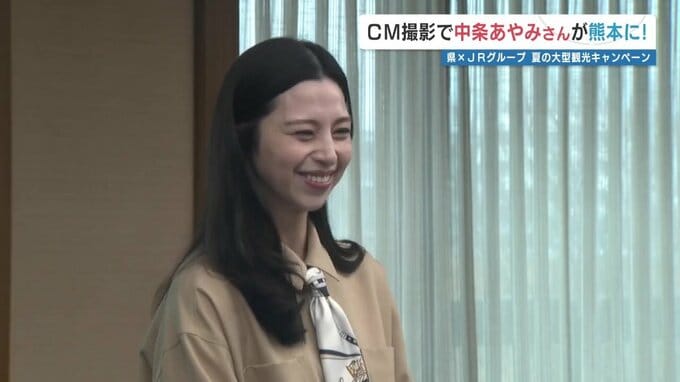大阪府出身の中条さんは、熊本県とJRグループが夏に予定している大型観光キャンペーンに関連するコマーシャル撮影のため、昨日(9日)から熊本を訪れています。