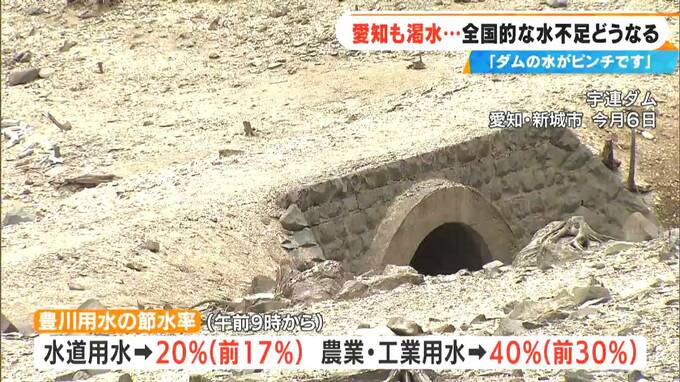 豊川用水では去年8月から節水を始めましたが、10日午前9時からの節水率は水道用水で20%、農業・工業用水が40%に強化されました。