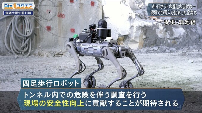 その高い運動能力などが評価され、すでに総合建設会社『鴻池組』は四足歩行ロボットをトンネル工事の調査に導入。作業員が行っていたトンネル内での危険を伴う調査をロボットが行うことで、現場の安全性向上に大きく貢献することが期待されている。