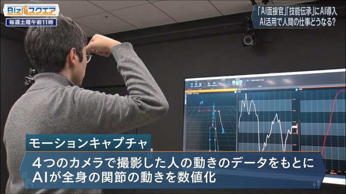 『アキュイティー』が開発した「モーションキャプチャ」は、4つのカメラで撮影した人の動きのデータをもとに、“AIが全身の関節の動きを数値化”する。