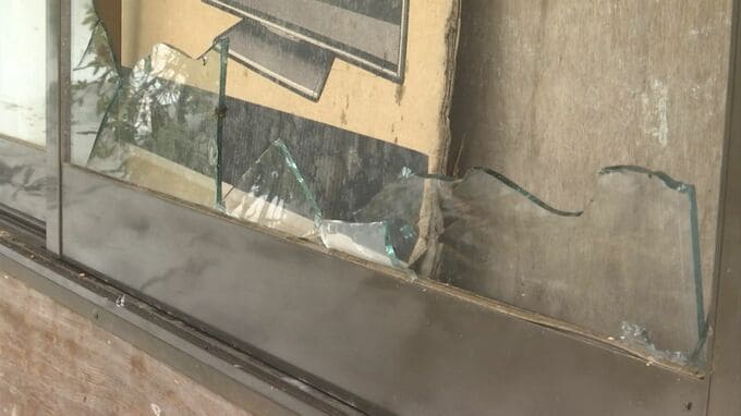さらに倒れた大スギは、参道脇の旅館の建物に当たり、ひさしが壊れたり窓ガラスが割れるなどの被害も。
